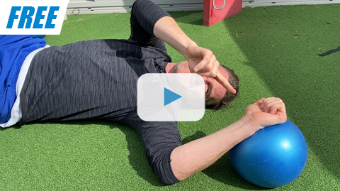 | Lying on your back with your arm out at 90 deg abduction. Place the soft ball under your wrist and slowly push back into the ball to maximal (below pain). Hold isometrically for 10sec-30sec as directed, with a 5-10sec rest in between repetitions |