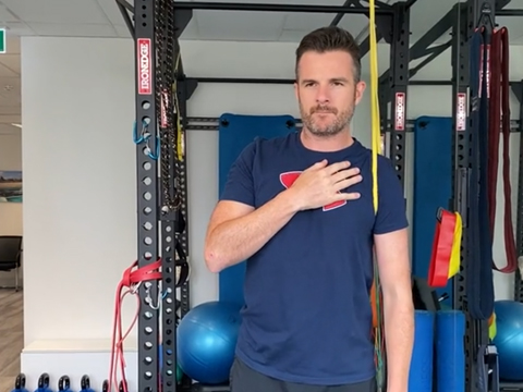 Aim to complete the mobility exercises 2-3 times per day and the rehab exercises 1-2 sessions per day, EVERY day if possible over the next 3 weeks. From this week you should notice a change in the freedom of movement of the shoulder generally in mostly all of your PROM exercises that you do. You can go further into range if there is no pain but don’t push to stretching pain. The exercises this week advance slightly to start you passively abducting (arm away from body) up to 90° as able. Your new limit for external rotation (rotation outwards) is 20 degrees. DO NOT go beyond that unless your surgeon allows. Keep working on the scapular stabilisation exercises to improve your shoulder blade control, posture and base of support for the shoulder joint, in preparation for increasing scapular, weight-bearing. There are a few more exercises to help your mobility like the rope-pulley flexion exercise. You need to refrain from doing isometric strengthening work still at this stage while you heal, as active rotator cuff and shoulder strengthening and loading work will commence in the next stage (week 7). Therefore it's important that you build up the tone and activity in the shoulder in preparation with the passive-assisted exercises. The scapula band resisted exercises in this stage also help correct 'bad patterning' of the shoulder that has developed after all the pain, surgery and lack of use that has switched off the postural muscles and motor control mechanisms. As soon as you get up start on your exercises. You will wake up stiff and if you free it up early you will feel better immediately which helps you them and later in the day. External rotation maybe the first one to do in the morning as it will be the mostly relieving, then follow through with the others. Don’t skip exercises. Mix up the order too each day to add variety and see what works best for you. Sometimes a 3 circuits of one set for each exercise, works. Better than three sets of each exercise and then moving onto the next exercise. Focus on maintaining the 0 deg external rotation through your flexion movement in supine, and as much as you can with the pulleys and the standing wand. Towards the end of week 3 and into week 4 you might want to start doing a workout. You need to avoid resistance and load training right now as it may put too much stress on the system that’s trying to heal the shoulder, and at the same time you may tense the rotator cuff too much as well. So, my advice is to think about movement rather than strengthening and stick to body weight ex with some band options. You can even combine some of your shoulder mobility exercises into it if you want. Just watch the balance aspect and don’t get too adventurous! Into week 4 and here are the 2 exercises added in to this next ‘stage 2’. You’re still doing the previous exercises as well but make sure it’s “pure” movement this week especially with abduction and flexion. Your external rotation wand work will pay off here. OH, and don’t forget to use the squeeze ball still. Pump that fluid in the arm and keep the grip strength up. GOALS Flexion: 90-100 deg External Rotation 20 deg Abduction: 90-100 deg |